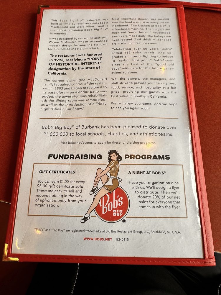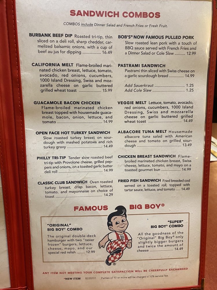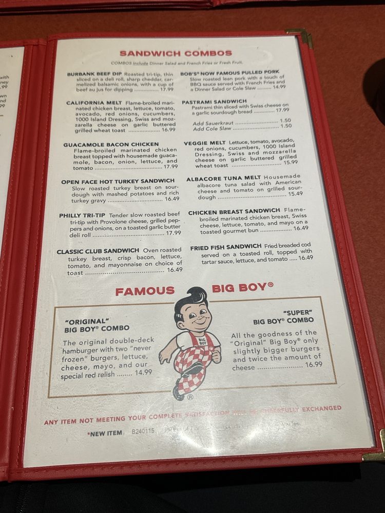 Bob’s Big Boy, located at 4211 W Riverside Dr Burbank, CA 91505, is a quintessential American diner offering a nostalgic experience with its old-school vibe and classic menu. The restaurant provides various utilities such as takeout, reservations, delivery, and even vegan options for those with dietary preferences. Customers rave about the generous portions and delicious dishes like the Bleu Cheese Burger and Pappy Parker's Fried Chicken. The staff is praised for their friendly service, adding to the overall enjoyable dining experience. Whether you're stopping by for breakfast, lunch, dinner, or a late-night dessert, Bob’s Big Boy is a must-visit destination for a taste of nostalgia and comfort food.